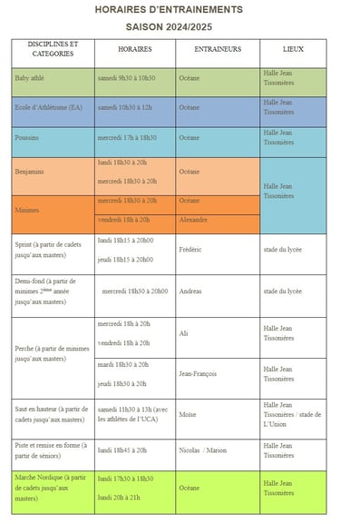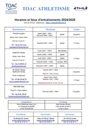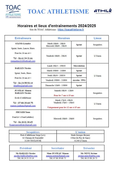 Découvrez les horaires et lieux d'entraînement pour les clubs de l'US Fronton, Toac athlétisme et de l'Union.